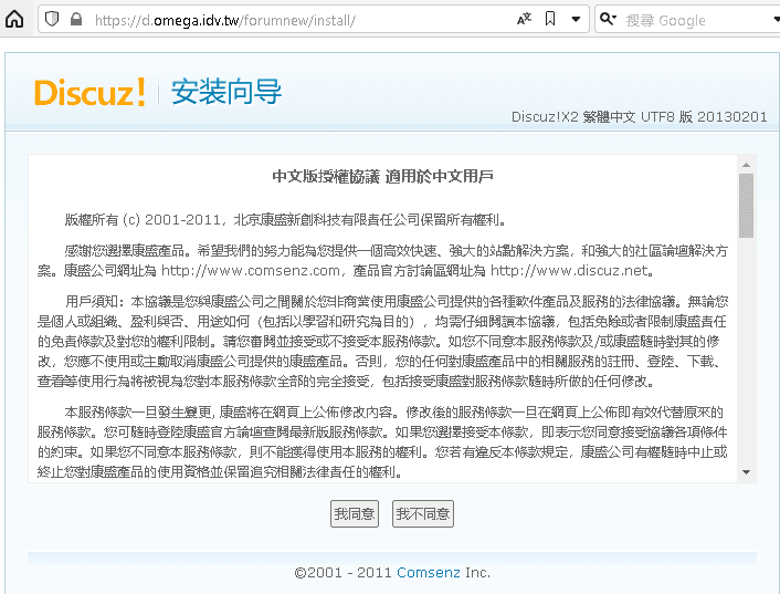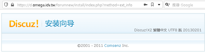 瀏覽器開啟 https://d.omega.idv.tw/forumnew/forum/install