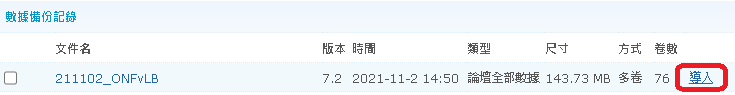 可以看到 211102_ONFvLB 有卷數 76 與導入按鈕