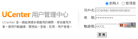 創始人密碼輸入 P@ssOmega! 按下 登錄 就能進入 UCenter 用戶管理中心 了 |