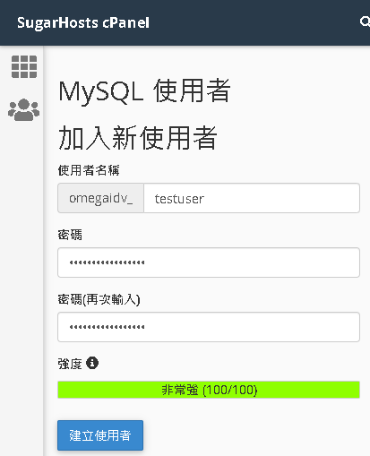 cPanel 後台 資料庫 -> MySQL 資料庫 | |