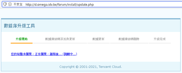 我們先到 Discuz! 管理中心 https://d.omega.idv.tw/forum/admincp.php 全局 -> 站點信息 -> 論壇關閉 -> 是 記得按下 提交 先關閉論壇確保不會有新的數據再寫入後 開始 DB 備份作業 | |