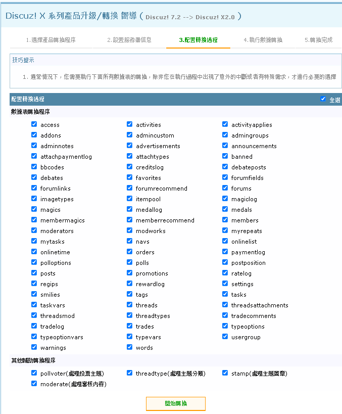 Discuz 7.2 資料匯入到 全新安裝的 Discuz X2.0 再升級到 Discuz X3.4
