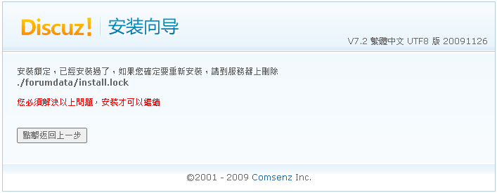 /d.omega.idv.tw/forumnew/forum/forumdata/install.lock 刪除才能繼續安裝